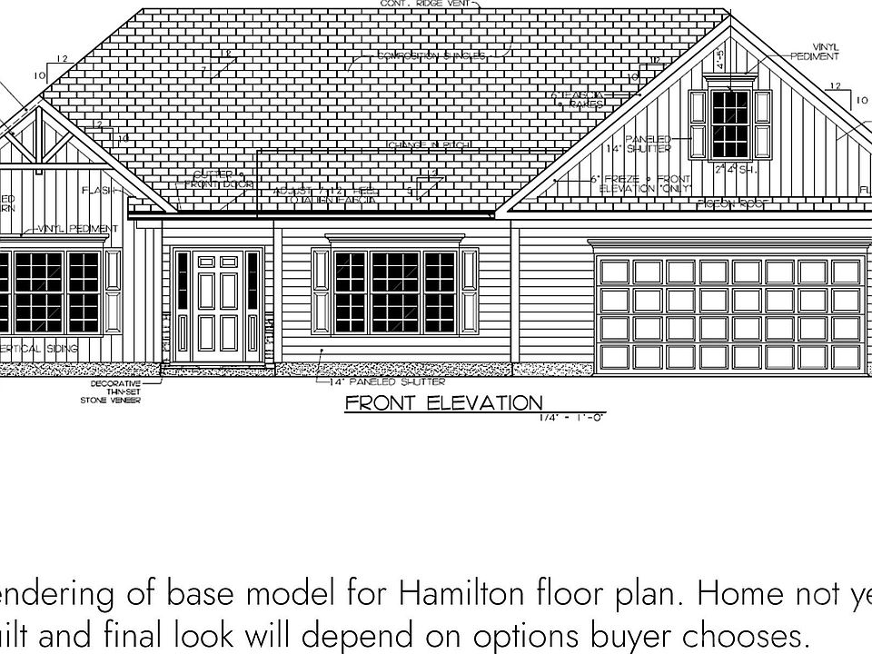 A Hamilton floor plan will be built on this cleared lot with woods at the back of it. Beautiful open plan with vaulted ceiling in the great room, kitchen & breakfast area, giving the main living space plenty of natural light. The kitchen with a large island comes standard with wonderful features such as soft-close drawers Cafe gas range, Cafe dishwasher, and a built-in microwave. Split-bedroom plan with the primary suite with walk-in closet and spacious bath with tiled shower on one side, and 2 additional bedrooms with a full bath on the other side of the home. The home also features an office, formal dining room, and a spacious laundry room. A large back porch with a view of the wooded area at the back of the lot is perfect for relaxing or entertaining guests. Ask us about other available lots and homes! Prime location just a short drive from downtown Troutman, Lake Norman State Park, and I-77.
