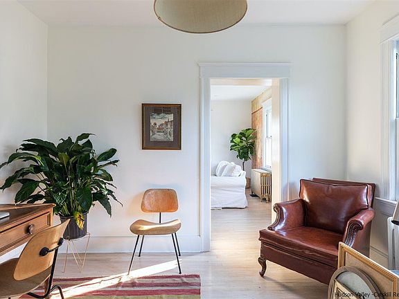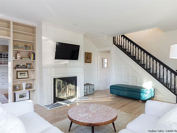Meticulously renovated and overflowing with tons of original charm and details, this spectacular Kingston home offers all the interior and exterior space anyone could want while living in town and close to everything! Enter through the idyllic front porch (porch swing and all) and into the large, living room filled with the warmth of wood flooring, built-in bookcases, and charming traces of the past. The ground floor layout flows effortlessly through the living room, a smaller sitting room/library/home office with more original built-ins, a large eat-in kitchen with adjacent full bathroom, and separate ample dining room. On the second floor, an oversized landing at the top of the stairs connects 4 bright and airy bedrooms, an additional full bathroom, and laundry closet. Off the kitchen, a screened porch leads out to the yard which is the perfect place for outdoor dining, lounging by the fire, and entertaining. The house is flanked by two separate driveways (extra parking!), one which leads to a small garage/workshop with quaint arched swing doors. A covered, partially enclosed area adjacent to the screened porch is an ideal potting shed or additional workspace while another shed in the yard provides additional storage space. Conveniently located in the heart of Uptown Kingston, mere minutes to restaurants and shops (Boitsons, Stockade Tavern, Le Canard, Hoffman House, Santa Fe, Outdated Cafe, Yum Yum Noodle, Rough Draft Bar & Books, Hamilton & Adams, Lovefield Vintage), the farmer's market in the historic Stockade District, public transportation (Trailways Bus), and just 90 minutes from NYC.