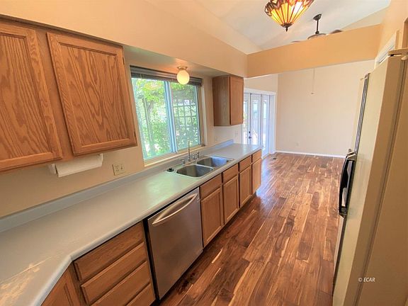 - Features And Inclusions: Dishwasher, Garbage Disposal, Flooring- Laminate, Refrigerator, Flooring- Carpet, Oven/Range- Electric, Walk-in Closets, Work Shop, Deck(s) Uncovered, Patio- Uncovered, Flooring- Tile, Storage Shed, Water Heater- Propane, Garden Area, Vaulted Ceilings, Lawn, Sprinklers- Automatic, View of Mountains, Fenced- Partial, RV/Boat Parking, Pellet Stove, Ceiling Fan(s), Smoke Detectors, Chandelier(s), Faces: East, Landscaping: Partial
