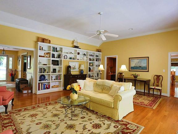 Set an appointment to view this quality constructed custom home with professionally landscaped grounds and serene natural surroundings. Built by Bob Sykes, this quality crafted home was originally designed as a primary residence with one-level living in mind. The current owner's renovation includes the addition of a second floor offering two guest bedrooms, one full bath, a den/sitting area in the alcove, and a finished room above the garage that currently serves as an office and fitness area but could easily be converted to a game/media room. An inviting ceramic tiled foyer opens up to beautifully finished hardwood floors throughout the living room, kitchen and sun room. The handsome living area features a wall of custom built-in shelving, gas fireplace, crown molding, high ceiling with fan, and French doors that lead to a sun deck. There is ample room for a dining area at one end of the great room. A warm welcome is extended to those who enter the spacious gourmet kitchen. This clever design includes plenty of room for guests to gather around two islands with solid surface countertops and 2 Corian sinks. A new refrigerator, built-in oven, cooktop, microwave and dishwasher complete recent updates, and oak cabinets include numerous slide out shelves and two pantries. The bay window area is perfect for dining and can accommodate eight to ten people. The sunroom is accessible by two entries off the kitchen and provides additional space for family and friends. A Vermont Castings stove and portable air conditioner that vents to the outside, provides heat and air to the sunroom year-round. This cheerful space is sunlit by windows on all sides, two of which open for fresh air, and offers a cooling ceiling fan and blinds on the south side. (The sunroom is included in the square footage reported for heated living area.) There are two bedrooms on the ground level. A private master suite has pocket doors to the bathroom, which was recently painted, with double sinks, new sink fixtures, jetted tub, shower, separate toilet area, ceramic tile flooring and a walk-in closet. A second bedroom, located off the foyer, has a private door to a full bathroom with shower and double sinks. This bathroom is also accessible by a hallway entrance for guest use. A cozy den with pocket doors off of the foyer provides a stairway leading to the top floor. A geothermal system services the first floor with high efficiency heating and cooling and minimizes the cost of electric bills. An irrigation system, with well and pump, was installed for landscaping care when the home was built. The attached two car garage provides a side door entrance, utility sink, stairs that lead to the FROG, and a home entrance to the kitchen and laundry areas. Outdoor amenities include a patio, an outdoor shower and beautifully landscaped grounds. Other features include: solid 6 panel doors, copper piping, propane tank to feed fireplace, sunroom stove and deck grill, as well as ceiling fans throughout, chair rails, some handicapped accessible features ( 4 wider doors, higher sink counter and lavatory) and numerous under roof storage areas. Additional rooms can be added upstairs, and a plan has been drawn up for the addition of a pool in the back yard off of the driveway. Chicahauk is a premier community within Southern Shores offering beach access, parking areas close to the beach, a park with tennis courts, ballfield, playground, basketball and bocce ball courts. A short 10-12 minute walk down Chicahauk Trail gets you to the beach, and avoid Rte. 12 by taking the back road that leads to the Marketplace Shopping Center. Bike, jog, walk your dog, on the quiet streets. Join Southern Shores Civic Association at $50 per year for boat ramp access, sound beach access and other amenities.
