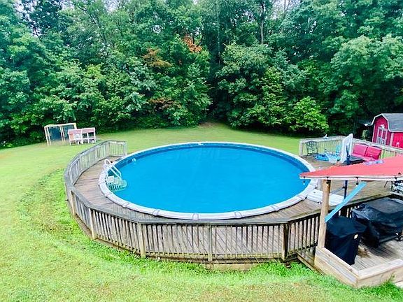 2 story home beautifully situated on 9.59 acres offers 4 bedrooms and 2 1/2 baths plus an additional full bathroom on the lower level. Great room boasts vaulted ceilings and a fireplace. Eat-In Kitchen is open to dining area with abundant natural light, has custom cabinetry and breakfast bar, sliding doors that lead to the upper back deck. There is also a formal dining room for entertaining. Laundry, 1/2 bath and master suite conveniently located on main floor and 3 bedrooms, full bath, and loft/office on the second floor. Full, Walk-Out basement has a large rec room, bonus room and the 3rd full bath. Walk out leads to a charming Tiki Bar and the pool area. New Furnace and A/C in 2019.