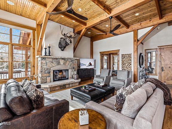 Capitalizing on views of the 9th Fairway at The Mountain Course at Cordillera sits this 5,290 square foot residence in arguably the most desired enclave within Cordillera. Positioned on a cul-de-sac, the home has a comfortably smooth floorplan with plenty of space for everyone. The thoughtful main-level living features a great room with vaulted ceilings and gas fireplace, dining room, kitchen, office and primary suite. There is a large wrap around deck so one can soak in the north-westerly views or enjoy watching golfers go by. The lower has 3 en-suite guest bedrooms, large family room, laundry room and generous storage. There is an additional ensuite bedroom above the garage for added privacy.