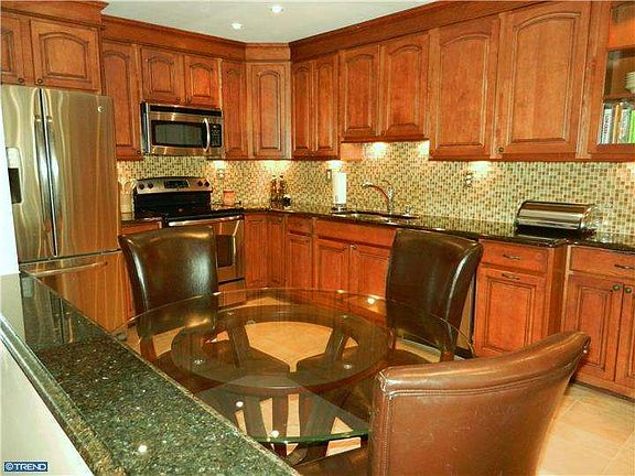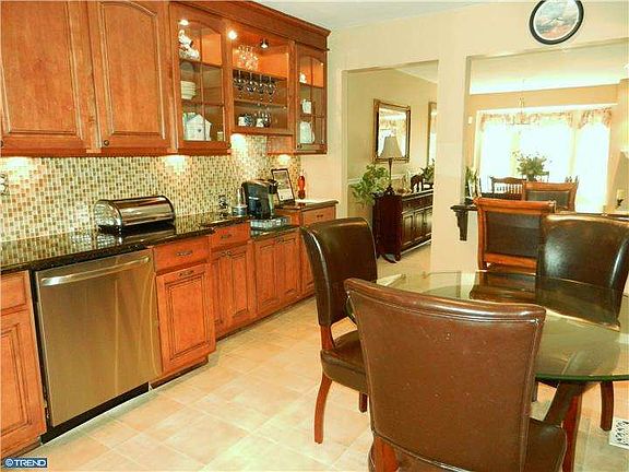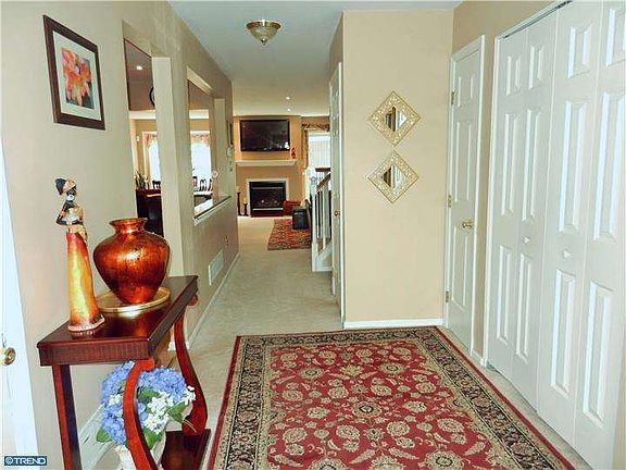 Generous sized townhome is the Cambridge Model and sits on a premium lot in beautiful College Woods development. The home has an attached garage (with new insulated steel door) and driveway (recently resealed) with room for two more vehicles. Enjoy a private entrance with covered front porch to keep you out of the rain or just to sit and relax. Enter the home to a large foyer with hardwood and adjacent powder room. Spacious gourmet eat-in-kitchen boasts elegant wood cabinets, granite counter tops, under cabinet lighting, mosaic backsplash, double sink and stainless appliances. Recessed lighting in kitchen and throughout open concept great room with gas fire place. Enjoy formal dining by bay window or retreat to back deck through sliders. The second level has master bedroom with vaulted ceiling, sitting area and walk-in closet. Master bath also has vaulted ceiling, large soaking tub and stall shower. Second floor has laundry for your convenience, hall bath with tub/shower and two more spacious bedrooms. Walk-up attic with dormer window offers many options. Basement is finished and ready for your enjoyment. Seller is offering One Year Home Warranty. Refrigerator, washer/dryer and window treatments included.