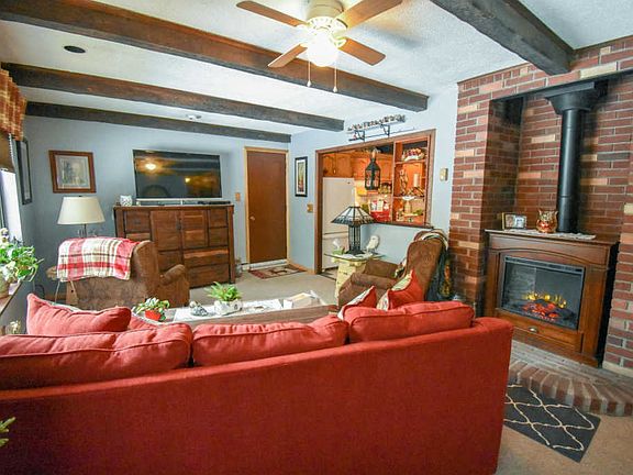 This Home Has A Great Flow From The Front Door Through The Living Room, Into The Kitchen, Then Into A Spacious Family Room. The Family Room Has A Vaulted Ceiling, An Electric Fireplace, Rock & Wood Accents Throughout, Two Outside Entrances, One To The Yard, One To The Deck. The Living Room Has An Electric Fireplace And Could Be Converted Back To The Coal Stove, Which is Currently Stored In The One & A Half Car Garage, Also With Extra Storage, New Garage Door & Opener Installed. There Are Three Bedrooms, One Bath And Utility Room With More Storage. This Home Is On A Corner Property, Just Under .4 Acre, Close To The Main Lake & Clubhouse. Seller Will Also Leave Some Furniture If You Would Like.