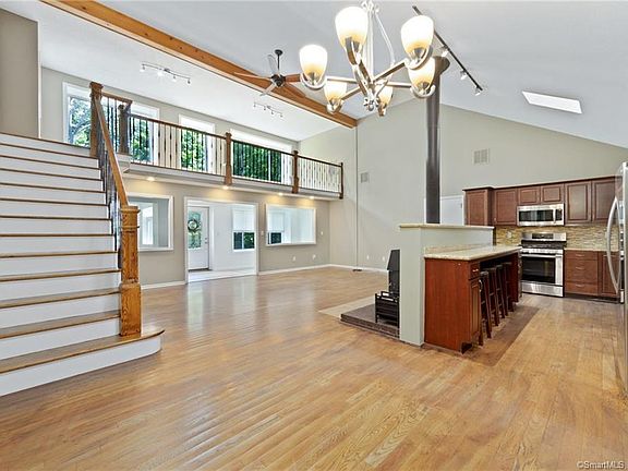 Feel as though you are on vacation year round coming home to this gorgeous and unique 3/4 bed, 2 full bath, custom built contemporary which sits on a large, secluded lot situated nicely set back from the road. Enjoy the serene setting while taking in all of the beautiful landscaping and lush park like grounds. This home is an entertainers dream and lends itself to throwing amazing gatherings! From the fabulous high ceilings & open feel this home is sure to delight! The stunning eat in kitchen is fit for a chef featuring cherry cabinets, center island, granite counters & matching S/S appliances. The dining room is open to the rest of the home and makes a wonderful place to host holidays. The living room with vaulted ceilings, skylights & wood burning stove will become the central hub of the home. As you enter into the foyer/mudroom there is a sun filled room that could be great for a playroom or office. There are 3 more rooms completing the main level, one is a Master suite w/ walk-in closet and full bath and the other 2 are good sized rooms with ample closet space, offering flexibilty. Head upstairs to the loft- overlooking everything and your spacious master suite which features a walk-in closet and an updated full bath. Enjoy relaxing in the hot tub or hosting summertime BBQ's out on the 2 tiered wrap-around deck. A new roof, gutters, downspouts, and fresh paint add peace of mind along with the attached 2 car garage! Words just can't describe- Check this one out today!