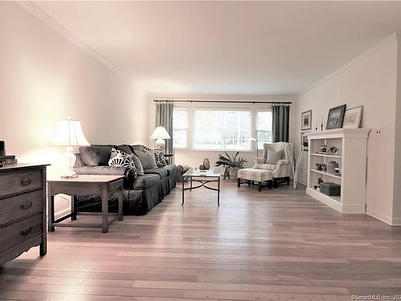 Beautiful, updated New Canaan condo available where you can walk to town, train, restaurants, library, shopping and parks. Great condo home near the heart of downtown New Canaan. Super easy access to the Merritt Parkway and major roadways. Easy one level living and only 2 steps up to your kitchen door. This ranch style condo boasts hardwood floors in the entry, living room and dining room. Freshly painted interior and new wall to wall carpet in bedroom. This first floor home is flooded with both morning and afternoon sunlight courtesy of the many windows. The large living room and dining room areas have plenty of space and is perfect for entertaining your family and friends. The bedroom has a walk-in closet and 2 additional closets near the bedroom entry - in addition, the hall has another closet for your linens and household products. Heat, hot water, pool, landscaping, grounds maintenance and trash pick up are included in the common charges. Washer, dryer and storage space is provided in lower level. Includes garage, one additional reserved parking space and plenty of guest parking. An extremely well-cared for complex with privacy, beautiful landscaping and 2 lovely pool areas to choose from. Arrange for your private showing as soon as possible - this comfortable, updated home won't last!