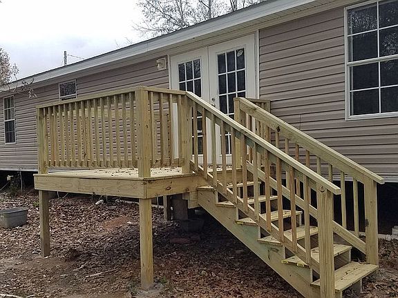 Here's your chance to own your own little slice of country paradise! Large Master Suite. Dedicated Dining Room. Breakfast Bar. Split floorplan. Plenty of space for everyone. Large yard. 3 new decks! 6 bedroom 3 bath perfect size for families. New paint, new flooring, A/C serviced. It puts you in a great location with a short 6 mile drive into town or Walmart. This 2009 32X80 Capp mobile home located on 5.17 acres and it’s full of beautiful trees. Close enough to city amenities but just far enough away to enjoy the country life. Have a seat and enjoy your morning coffee on the deck while listening to the birds.