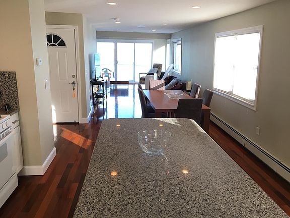 Completely remodeled waterfront duplex apartment. 2BR w/ lots of closet space, one large full bath and one half bath, LR, DR, hardwood floors throughout, granite countertops, large kitchen island, decks off of LR and Master BR, W/D, gas fireplace, walking distance to four restaurants, covered off-street parking, unfurnished, annual lease, landlord will consider a small dog Tenant responsible for utilities and snow removal