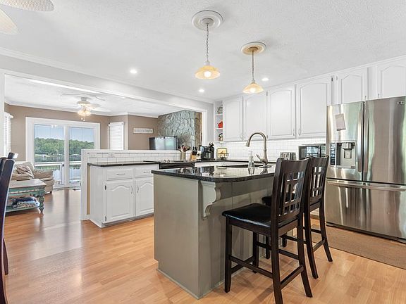 ONE STOP SHOP - THIS LAKEHOUSE HAS IT ALL!! Beautiful one level ranch with saltwater pool and awesome double boathouse! 3 bedrooms and 3 gorgeous updated baths is ready for fun! Fully furnished, this home has fantastic short term rental history. Large open concept kitchen (great lighting) with loads of counter and cabinet space. Game room and TV area with gas fireplace - built in office desk and shelves (great work from home setting), Lakeside decks and screened porch spans the home. Tons of storage, Attached 2 car garage. Outdoor shower. Private quiet restricted (no mobile homes) neighborhood. Sunset views, Fully fenced lakeside yard perfect for pets or kids. Wonderful location close to grocery, college, shopping, Atlanta, Macon... Fee simple.