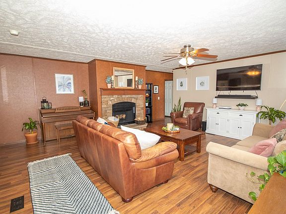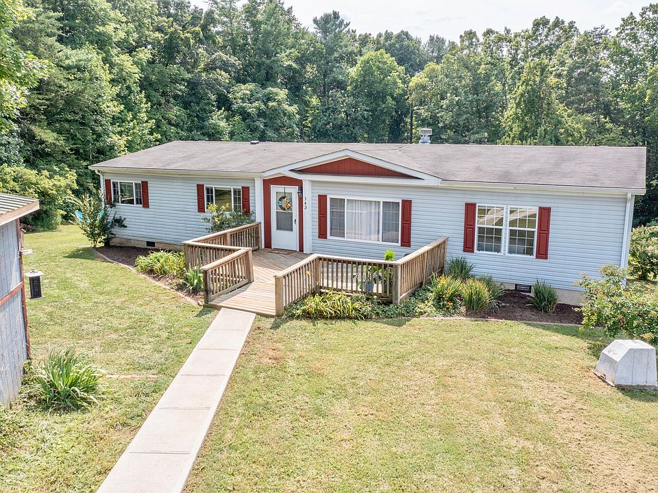 Looking for one level living with privacy and acreage? Look no further! This 3 bedroom, 2 full bath manufactured style home sits on 1.33 acres of cleared land offering a multitude of opportunities. Upon entering, you will find a large living room area with masonry stone fireplace, spacious kitchen with tons of cabinetry, counter top space and great sight lines ideal for entertaining. Master bedroom with en suite master bathroom featuring dual vanity sink, garden soaking tub, and walk in shower. Two more bedrooms on entry level with walk in closets and another full bath with dual vanities! Deck off of mudroom/laundry room offering views of cleared backyard just begging to be turned into large garden or place for kids to run and play safely!