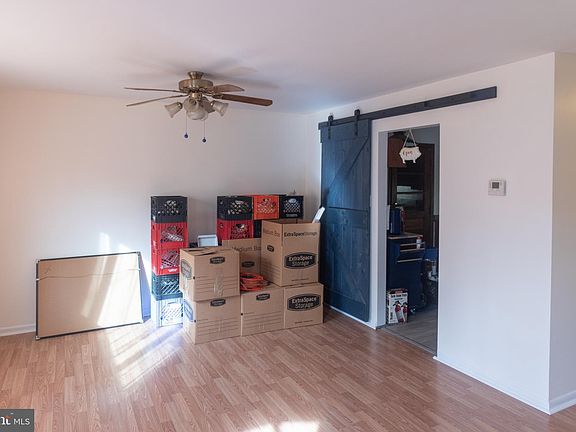 Vinyl fenceBarn doorLaundry roomUtility roomLaminate wood flooring