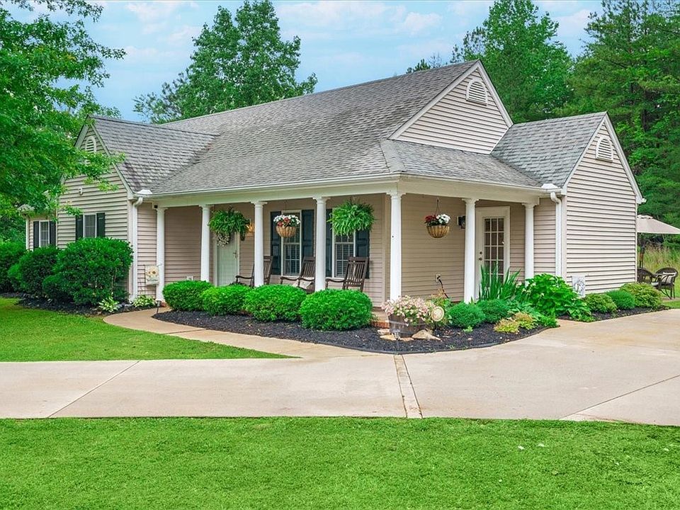 Stunning...the word that describes this 3 bedroom, 2 bathroom home sitting on approximately 3.84 (+/-), and 2 miles from the very popular Mile Creek Landing on Lake Keowee. If your taste is an open concept, this one has you covered with a spacious living room, dining room, and kitchen with a bar. The master bathroom has a walk-in closet and nice-sized master bathroom which includes a walk-in shower, beautiful soaker tub, and double vanity sinks. There are also two more bedrooms and one bathroom located on the same side of the home. There is LPV flooring throughout the majority of the home and carpet in the bedrooms. Wanting your morning expresso on the partial wrapped around front porch or the back patio, well...the choose is yours. because this one has both! Speaking of the outdoors, you have plenty of space for outdoor cookouts, camping in the woods, or just enjoying the peaceful nature. Located in the desired Daniel High School District. Don't miss this one! WELCOME HOME!!