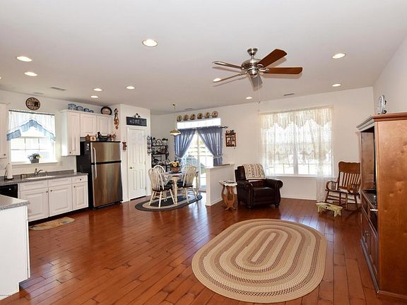 Located in the prestigious Four Seasons at South Knolls is this beautiful and rare Hampton model. Make your way inside and you'll find an open floor plan and gleaming wide-planked, hard wood flooring running throughout the main living areas. The kitchen features 42'' white cabinetry, stainless steel appliances, and a big pantry. Just off the kitchen you'll find a spacious dining room. The master bedroom features trey ceilings and a bumped out bay window and the master bath features large stall shower, upgraded tile and vanities, with double sinks and granite tops. Guest bedroom is very spacious and guest bathroom has upgraded faucets and vanity with Corian tops. Above the garage is a 20x10 storage room. This home is a true gem in a spectacular active adult community. Act fast!