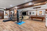 Custom bourbon roomPanoramic lake viewsIn-ground gunite poolOpen airy ambiancePrivate dockRich wood finishes