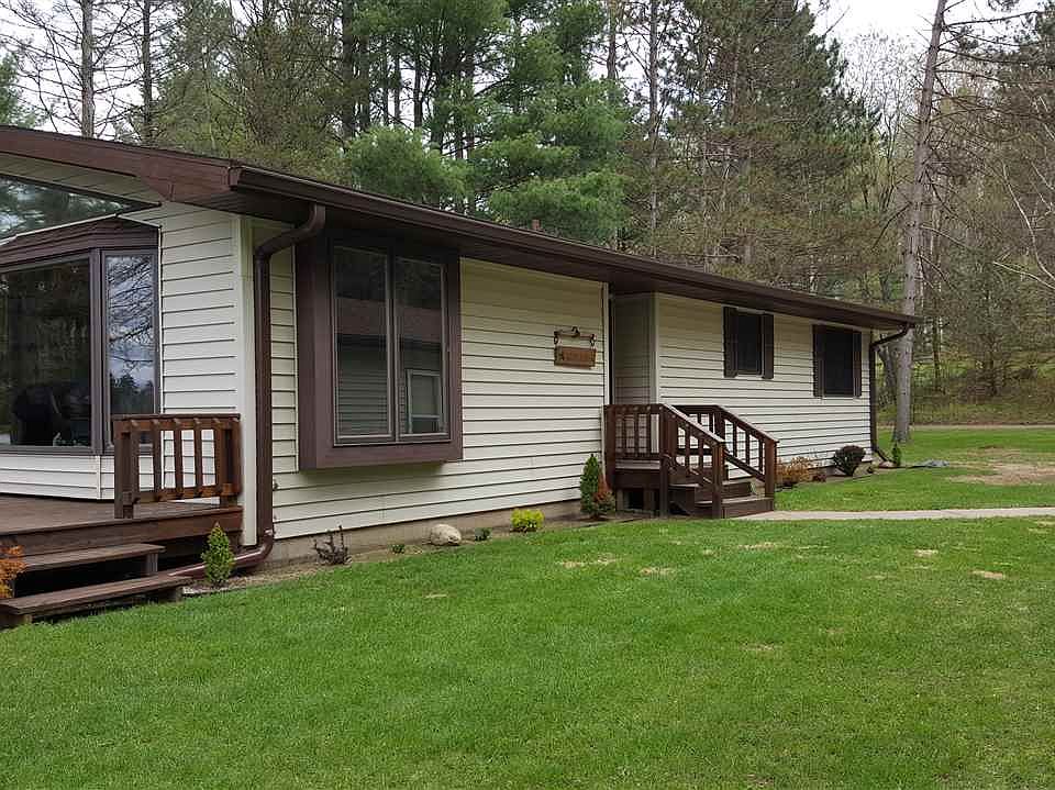 This lovely country home is in wonderful condition. The sellers are very immaculate and have it furnished and decorated beautifully. They are willing to negotiate some of the furnishings. All new appliances will stay in the home. The manicured lawn leads to 150' of sandy frontage on 79 acre Gibson Lake. This home has many recent updates such as granite countertops, new doors, lights, ceiling fan, flooring in kitchen and appliances are stainless steel and only 1 year old. The crawl space was completed on the interior by Clean Space and has a system installed to control humidity. Approximate cost of this installation was over $6,000.00. The septic was pumped and inspected in 2016 and an exposed septic lid was put in. New roof and gutters in 2016. Deck was stained in 2016. They own the 330 gallon propane tank. There is also a 2 car detached garage, storage shed and dock. Peaceful, quiet area on a dead end road. One neighbor to the right who is here 2 weeks in July. Don't miss the opportunity to view this exceptional home and water frontage.