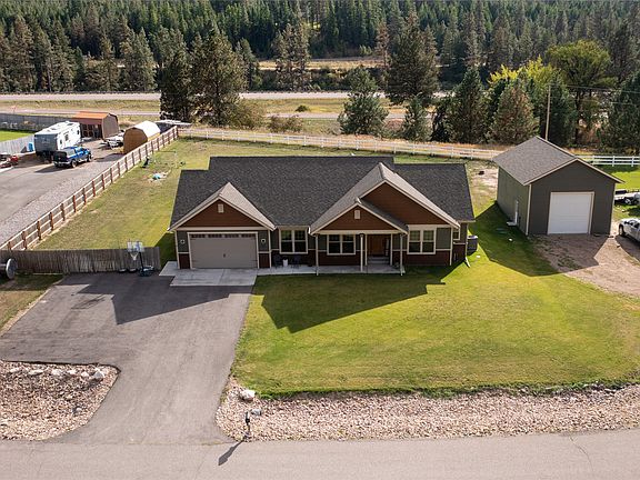This beautiful 4 bedroom, 2-bath 1868 sq ft single level home sits on just under an acre facing mountain views from both the front and back yard! This home was built in 2018 and features a custom floor plan and finishes throughout. Knotty Alder trim and doors, vaulted ceilings and large windows in the living area, Open concept kitchen, dining and living room. The primary suite features a walk-in closet, spacious en-suite bathroom with dual sinks and a linen closet. The 4th “bedroom” is used as an office and is a great option for remote working. There is a 3-car tandem garage, additional paved parking and a large 24x38 shop with 12x12 garage door that has separate parking and room for an RV either outside or inside. This home is located on a cul-de-sac so traffic is minimal! Located less than 30 minutes to Missoula and minutes away from the Clark Fork River for fishing and kayaking plus all the recreation you can imagine this home is a must see! For more information or to schedule a showing, contact Sally Yarnall at 406-239-6021 or your Real Estate Professional.