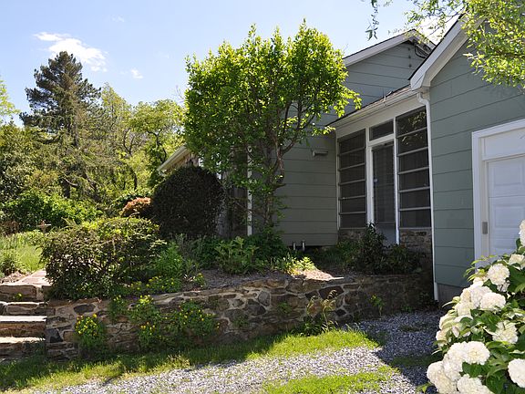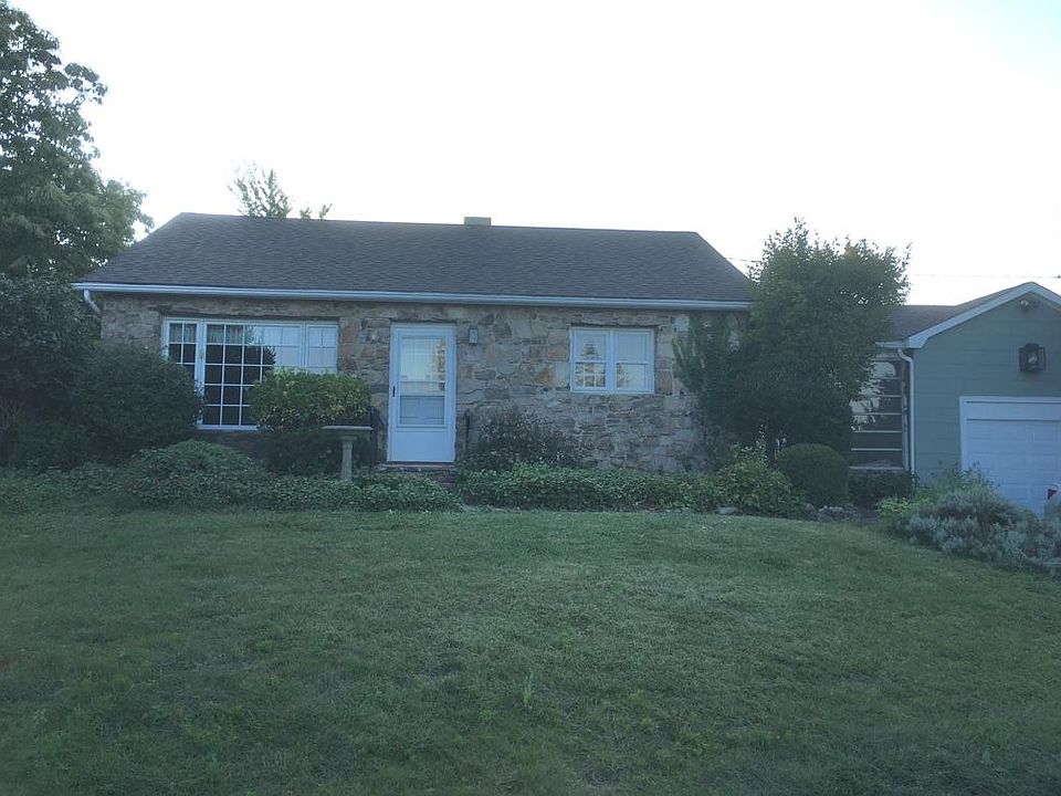 Totally renovated, ranch with hardwood floors, basement, garage and new septic 05/2017, oil tank in basement. New electric, Dutch front door to Living room with cut-out to kitchen with door to 3 season stone floor porch with back door to yard. Stone Front. Large thermal front room window over looking perennials and professionally landscaped property. Bathroom with quartz topped pantry, glass slider shower doors and vintage light fixtures. Laundry shoot to basement. Bedroom with built in shelves and desk with closet. 2nd bedroom with closet and linen closet. Attic stairs and full basement with laundry hook-ups.