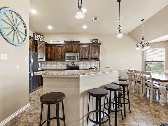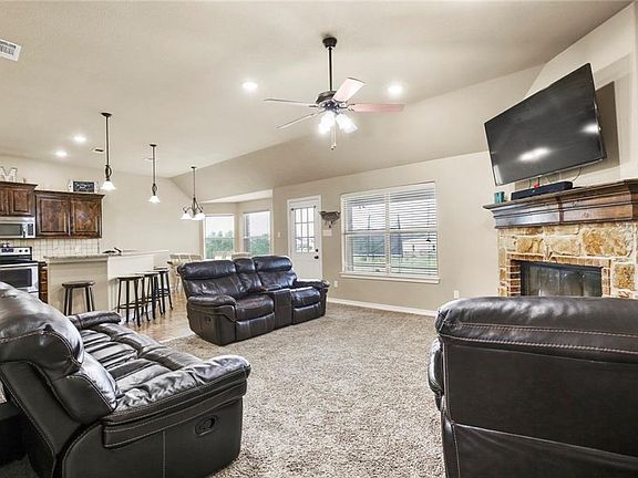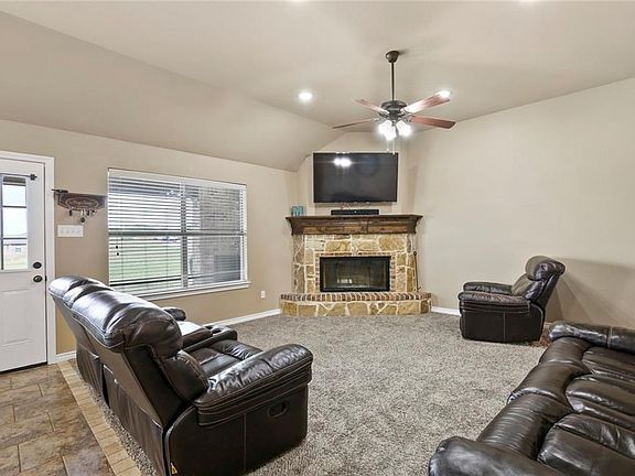 COUNTRY LIVING! Custom 5 bedroom, 2 bath home on over an acre on a quiet cul de sac in Prairie View Estates. Open concept kitchen features granite, tumbled rock back splash and custom cabinets overlooking the living room, perfect for entertaining. The large living room looks out to the back yard and features a custom fireplace. split bedrooms, large master suite with separate shower and soaker tub, spacious guest rooms. 5th bedroom is upstairs and could double as a media room, play room, etc. covered back patio with built in fire place for the cool winter days and nights. Extremely energy efficient upgraded with spray insulation. NO HOA! NO CITY TAXES!35 minutes from Denton, 35 minutes from the Alliance area.