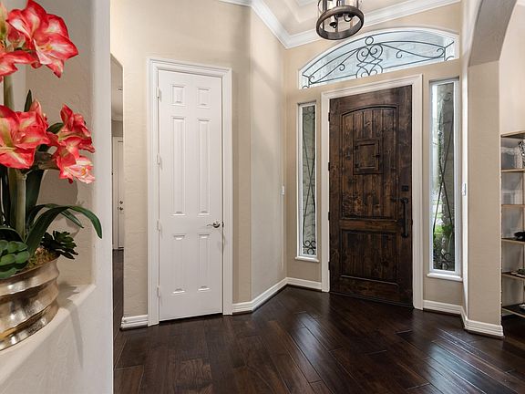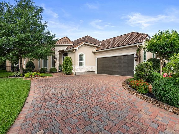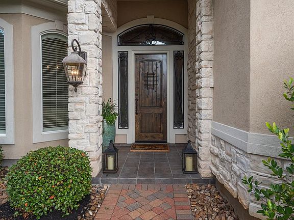 STUNNING, GORGEOUS don't begin to describe this home! This custom Flair home w/terracotta tile roof is nestled on a quiet cul d sac in one of the area's premiere gated communities! Recently renovated from floor to ceiling, no detail has been overlooked. Wide plank wood flooring welcome you along with 3 wood plantation shutters. Handsome study w/french doors, built-in custom cabinets, tray ceiling w/ double crown molding! XL living room w/soaring ceiling highlighted by cedar beams, gas log fireplace w/stone floor to ceiling, & custom cedar mantle. Lg. island kitchen includes Granite, 5 burner Bosch cooktop, under & in cabinet lighting, new farmhouse sink. Butlers pantry w/wine fridge & custom cabinets. Spacious, private master suite boasts cedar beams. Master bath features dual vanities, jacuzzi tub, XL sunken shower, & dual closets. The relaxation you will experience from your back porch is paramount w/the lake and sound of water feature close by! Weekly Lawn care included in HOA!