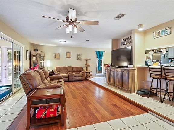 Spacious floor plan. Kitchen contains a breakfast bar and a separate dining area. Off the kitchen is a large bonus room that comes with window unit. Both bathrooms have updated vanities and all bedrooms have brand new flooring. Large fenced backyard has a brick patio and a big shed with covered porch. Use it for storage or make a great entering area. New roof installed in April of 2020 with new windows installed as well.