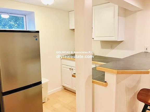 Studio rental opportunity in the BASEMENT LEVEL of a well maintained single family on treelined street in Waltham. RENTAL PRICE INCLUDES CENTRAL HEATING & COOLING, WATER & ELECTRIC & IN UNIT LAUNDRY. Unit is about 700sq ft and has recessed lights, some wood laminate & tile flooring. Modern tiled bathroom. Kitchen area has breakfast bar, fridge and portable convection oven. Very easy street parking. Pets and smoking are not allowed. First, last, security due prior to move in. Pictures are from prior to current tenancy.
