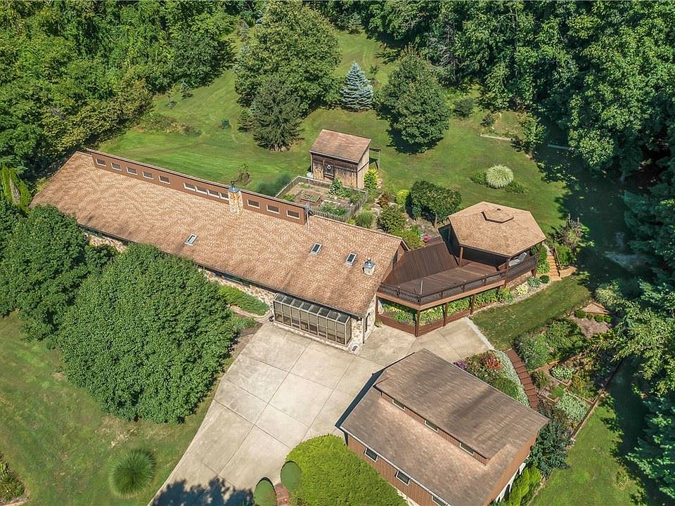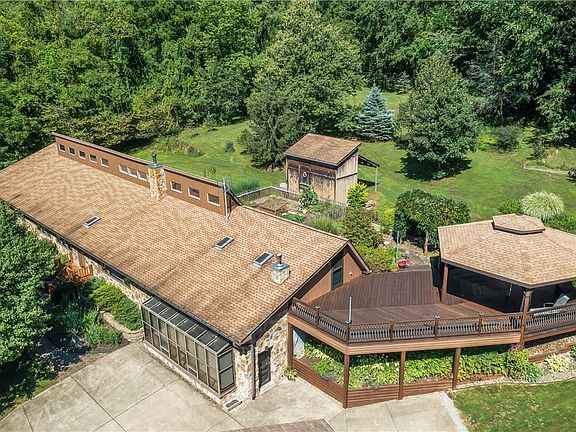 The private drive brings you up to 10 glorious acres(5 cleared, 5 wooded for hunting, perennial gardens &POND ). 24x24 2 story 3-car garage w/ extra storage. Low Clean and Green taxes, new Anderson Windows, and a geothermal furnace/AC help lower your budget. This 4-bedroom sprawling ranch has 3 baths. The Master bedroom has walk-in closets, a beautiful newer bath with a walk-in marble shower (wheelchair accessible), double sinks/granite, LED lighted mirrors, & faux skylight. The living room has a wood-burner with a Cherry-wood brick wall. And a pass-through to the kitchen. Propane stone fireplace in lower level w/wooden plank walls, built-in cabinets, and tv stays- includes pool table and sauna. Also, an upper loft overlooking Gameroom leads to the deck w/ screened 24 ft gazebo and deck, shed, and more gardens. The corridor kitchen has 2 pantries, quartz counters, an induction stove, Stainless appliances, and natural lit ceilings. Windows located on top of 1st floor give lots of light!