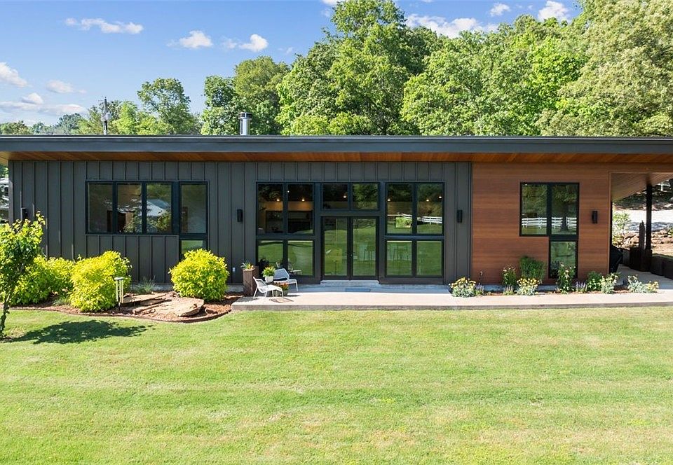 Welcome to your private Ozark Oasis. Situated on just under 4 acres fully fenced offers ample privacy and serenity. This beautiful modern contemporary home was built in 2020 and is a true masterpiece. The home was designed by local architect Hun-Bae Im who practiced with James Lambeth. The home consists of 2 suites and a large gathering area with soaring ceilings that