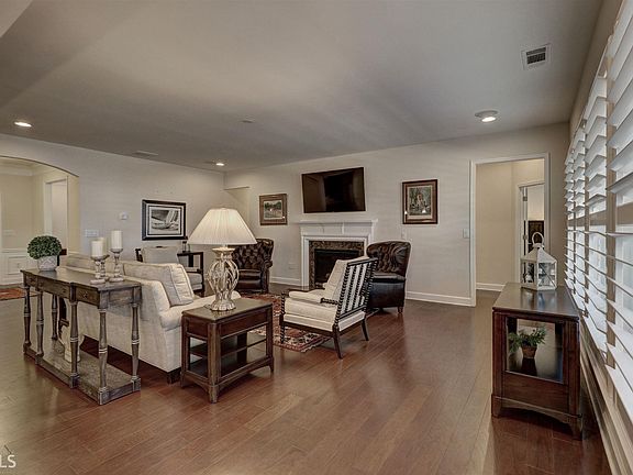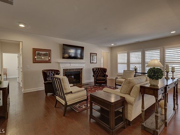 SPRING HAS ARRIVED AT SUN CITY PEACHTREE! AVAILABLE NOW! DUNWOODY PLAN- MAGNOLIA COLLECTION. CUL-DE-SAC LOT BACKS TO PRIVATE WOODED GREEN SPACE, CANNOT SEE NEIGHBORS FROM BACKYARD. ALL HARDWOOD AND TILE FLOORS NO CARPET. FOYER OPENS TO STUDY WITH FRENCH DOORS. OPEN CONCEPT FLOOR PLAN KITCHEN OPEN TO FAMILYROOM, PLANTATION SHUTTERS, WITH GAS STARTER FIREPLACE. 5" HARDWOODS THROUGHOUT AND GRANITE IN KITCHEN, KITCHEN AID STAINLESS APPLIANCES. GRANITE COUNTER TOPS IN ALL THREE (3) BATHS. SURROUND SOUND, TREY CEILING IN MASTER SUITE. SPRINKLER SYSTEM, GARAGE FLOOR COATED AND FRESHLY PAINTED. BACK COVERED PORCH OVER LOOKS GREAT VIEW FROM THE BACK AND HAS HUGE EXTENDED PATIO AREA FOR GRILLING AND LEISURE. MASTER BATH HAS OVERSIZED SHOWER, DOUBLE SINKS AND WALK-IN CLOSET. MUDROOM W\DROP STATION.