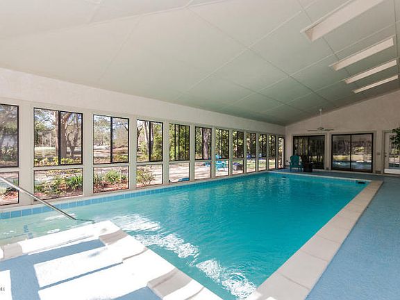 FLORIDA LIVING AT IT''S BEST! Live the good life on Panama City Beach, on a golf course with a marina, in a beautiful home with an indoor pool! Swim 365 days a year in your own indoor solar heated pool in a custom designed one-of-a-kind home looking out on the 16th hole of a PGA championship golf course. The low $1300 a year HOA fee covers the 24 hr guards and security patrol in this gated resort as well as access to all the resort amenities such as tennis, restaurants, world class marina, fishing, etc. This home has been totally updated with top level matching granite in the kitchen and bathrooms. The kitchen features new stainless steel appliances, accent lighting, a large breakfast bar area, tons of cabinet space and counter space, and a beautiful view looking out overyour indoor pool at the 16th green. The large master bedroom is downstairs and features a roomy walk-in closet and sliding glass doors that look out at the pool and backyard with huge magnolia, oak, and sweet loquat fruit trees. The master bath is extremely large with a double vanity, walk-in custom shower, tub, and new tile throughout. There is a very large laundry room downstairs with lots of cabinets, a large commercial sink and a nice size lighted storage room in the laundry room as well. Convenient ½ bath with entrance to pool so no wet feet in the house! Two roomy storage rooms outside under carport area. The 3 bedrooms upstairs - one of which would make perfect office area or nursery - are very bright with an abundance of natural light from the skylights and featuring large closets and lots of storage space. The upstairs bathroom is updated as well. The huge indoor pool is the icing on the cake! The architect designed this house with the pool as the integral part. AND there's more - the entrance way greets you with beautiful, one of a kind stained glass and antique front door that came out of a 100+ year old mansion in Nashville. The home is freshly painted inside with new carpet throughout. Move in ready! This home will wow you! It doesn't get any better than this folks! Come live the Florida beach good life and enjoy!