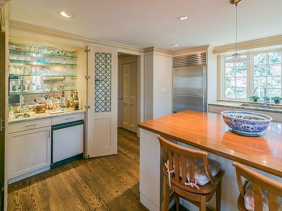 - Kit Dscrp: Flooring - Hardwood, Countertops - Stone/Granite/Solid, Kitchen Island, Stainless Steel Appliances, Wet Bar, Recessed Lighting, Remodeled, Wine Chiller