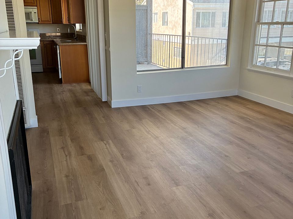Freshly painted new Flooring, base boards, Bathroom vanity and toiles. All new plugs, switches, and plates. New blinds. Unit has a deck. Parking is in carport below unit. Close to triangle square and freeway.