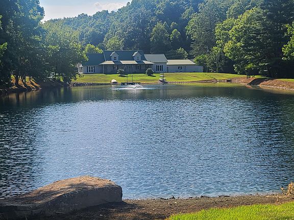 Looking for a little piece of Heaven on Earth? Feast your eyes on this hidden jewel. This secluded, cozy cabin like feel, oasis is minutes from shopping, centers, schools and restaurants. Enjoy your morning coffee on the covered front porch with breathtaking views of the fully stocked pond. Property offers 3.5 acres, 3 bedrooms and 3 bath. Spacious kitchen and Dining room big enough to host any family gathering. Off the kitchen you will find the oversized, yet cozy living room with surround sound. Enjoy cuddling by the wood burning fireplace or gas fireplace, take your pick. Perfect for entertaining. Down the hall from the kichen is a full guest bath, which leads to the Primary first floor suite with large walk-in closet and private bath. Primary bath includes double vanity, jetted tub and rain shower head. Make your way upstairs to find two large bedrooms with tons of closet and storage space in each. The third full bath has the most adorable swinging cowboy doors that seperate the toilet and jetted tub from the double vanity for extra privacy. Through the 3rd bedroom you will find a cozy loft overlooking the primary bedroom with breaktaking. views. Could be used as a home office or reading nook. Home also has a gas water heater in the primary walk-in closet and a Tankless gas water heater in the attic in the living room. Detached garage has a/c and both wood burning and gas heat, new LED lights, tons of electrical outlets and loads of space for any workshop project. Beside the detached garage is a bonus storage building for all your lawn care equipment and behind the garage is a hidden storage shed. From the freshly sealed black top driveway, to the firepit to the relaxing views of the pond this home has everything and more to offer a new owner. Furnace has a 6yr warranty and the crawl space has a 10 yr warranty that will convey at closing. As well as, the sellers are offering a 1 yr home warranty with full asking price offers. Don't wait this one will not last long. Enjoy fishing off the dock, hosting family gatherings or just sit back and take in the view of the pond.