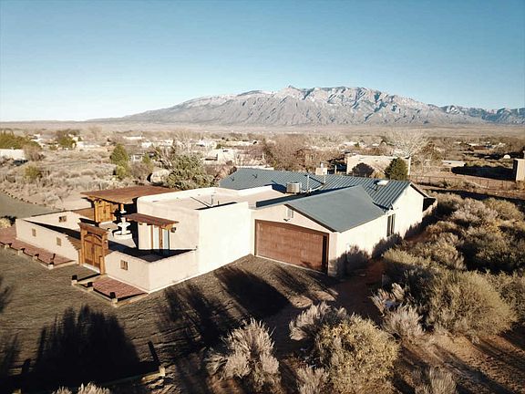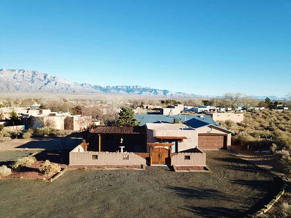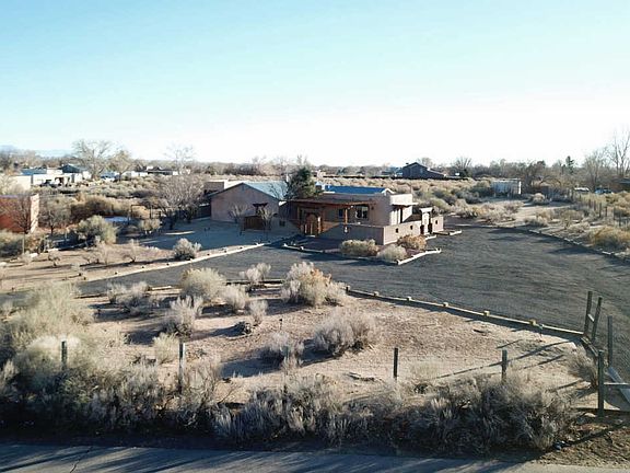 Wow, is what you will be thinking when you tour this re-envisioned Corrales gem. Situated on a large lot with gorgeous views of the Sandias, peaceful, serene, and one with nature living. This home has been renovated with exceptional attention to detail, smart home features, and won't disappoint. Beginning with the beautiful courtyard entry with custom woodwork, latilla cover, custom one of a kind gates, & 6' 4 tier fountain. The floor plan offers 2 master suites, spacious living area w/ kiva fireplace, and stunning kitchen w/granite countertops, stainless appl., and custom cabinetry. The master suite is chalked full of extras w/ digital fireplace accented w/stacked stone and dazzling master bath. Schedule your appnt. today to tour this marvelous home, it won't last long!