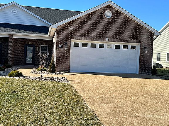 Duplex in desirable neighborhood and location, built as custom home and not a spec house, many custom include stone fireplace with mantel, window treatments, epoxy garage floor, exposed aggregate driveway, professionally landscaped, closets with built ins, extensive patio, propane appliances, and sod yard