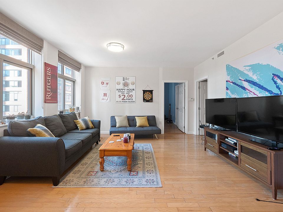 This is the best priced 2 bed condo by the waterfront. Welcome to your dream home, offering a perfect blend of urban convenience and waterfront serenity, only a 5 min walk away. Located in one of Jersey City's most vibrant neighborhoods Downtown, The Powerhouse Art's District, this newer construction open concept 2 bed condo (with deeded parking) puts you within a one block walk to the Grove Street PATH train and restaurant row, while still being zoned in the renowned P.S.16 School District. One of the most impressive features of this property is its prime location near the waterfront. Step outside and embrace the stunning views of the Hudson River, perfect for morning walks or evening strolls. Additionally, you'll find a plethora of local shops, boutiques, and restaurants outside your doorstep. Explore the vibrant culinary scene and immerse yourself in the lively atmosphere of this sought-after neighborhood. Experience the best of Jersey City Living. Property Highlights - Open concept design/ airy feel - 2 large bedrooms and 2 bathrooms - Deeded parking - 1 Block to Grove & Restaurant row - 5 min walk to waterfront - Newer Construction Elevator building - P.S.16 School District - Strong Property Values in area - Granite countertop with stainless appliances, and hardwood floor throughout the unit - great storage space throughout the home - Washer-dryer combo within the unit and there is a shared laundry room on every floor - Landscaped terrace for BBQ and hangout in the building - New Facade and New Windows being installed - Great investment opportunity Investors and end-users alike, don't miss out on this deal - schedule your tour today.