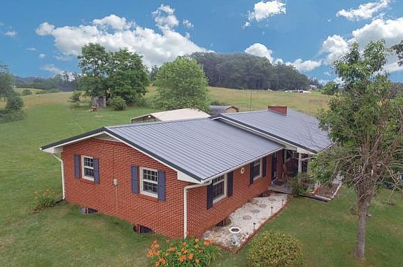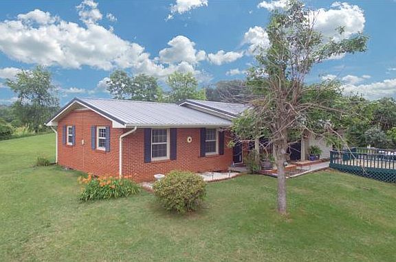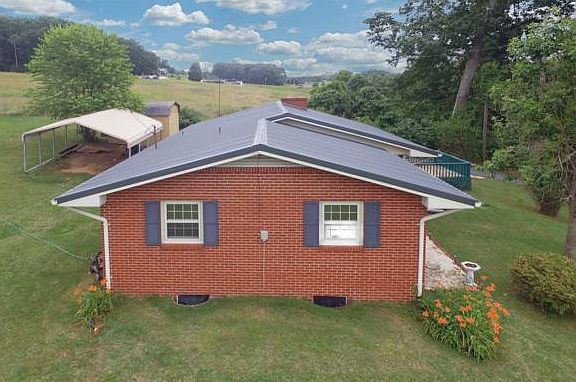 Best lot in the subdivision! 100% financing available Up to four bedroom one and a half bath brick ranch home is perched above the road is on a large lot, (104.55X183irr). The home features an updated metal roof, an updated HVAC system, a large living room with a fireplace, hardwood floors, a kitchen with a dining room area, a nice addition off the kitchen that leads to a pull under carport to get your car out of the weather. Hardwood floors in all three bedrooms with closets and the master is on the main level with a half bath. The basement is partially finished and has the start of another room with additional storage. The lot is large with a huge backyard area a storage shed and another de tached pull under car port. The front yard has a nice deck area and a covered front porch. This home is located in the country and is on a quiet dead end street that is family, kid and pet friendly.
