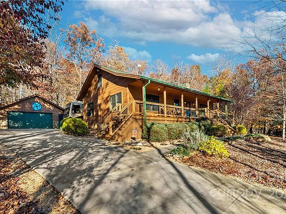 Come home to your retreat in the mountains! Gorgeous home in a peaceful gated community on nearly two acres in a private setting. Elegant interior features an open floor plan with cathedral ceilings, a sunroom and hickory wood flooring. The upstairs has a third bedroom and a walk in closet. Exterior includes cypress wood siding on the home and all out buildings. Wraparound porch built with Trex Composite Decking, hot tub and firepit. A two car garage, woodshop and storage shed also adorn this top quality well maintained property. Parking for RV and 4 vehicles. Land is both level and gently sloping allowing for gardening and outdoor activities. Enjoy the private 10 acre lake stocked with fish, a sandy beach, swimming, canoeing and picnicking. Private trail system extending for miles. The septic system is currently for a two bedroom home and could be expanded to support four bedrooms. Call today for your showing!