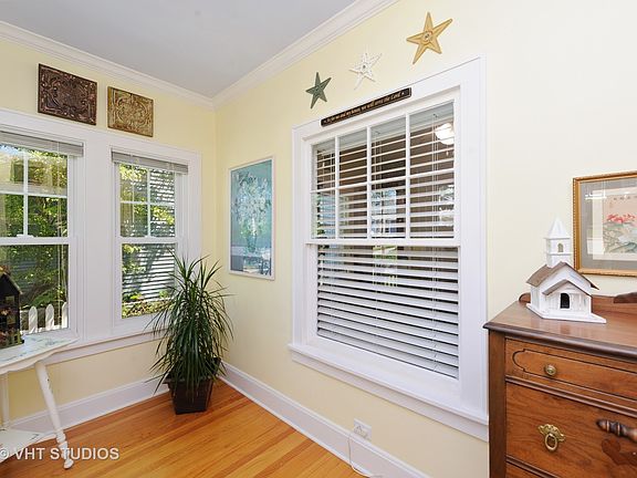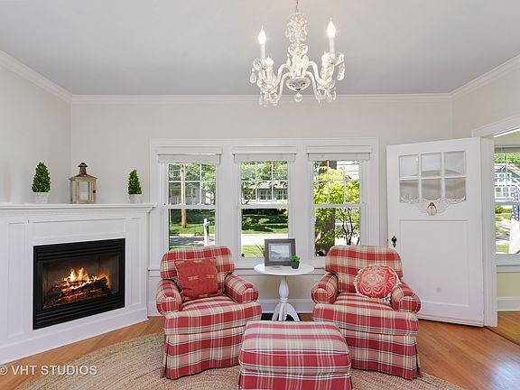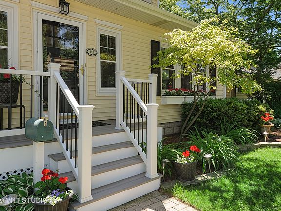 The vintage charm of this home begins as you walk up the steps to the enclosed front porch. The interior, with hardwood floors throughout, is warm and inviting. The main level features a spacious eat in kitchen with pantry, the living room with a gas fireplace, a cozy family room, two bedrooms and a FULL BATH. The primary bedroom with ensuite bathroom occupies the entire second level! The partially finished full basement has a half bath, extra living space and tons of storage. Enjoy summer nights relaxing on the deck overlooking the fenced in yard or walk in to town to grab dinner at Shakou or Francesca's. Detached two car garage! Of special note: Roof, siding and gutters 2014, water heater 2018, AC 2015, front steps 2018 and the windows are newer. The home is within steps to the Barrington High School and within walking distance to Field of Dreams, Barrington Park District, other restaurants and entertainment, fun stores, coffee shops and the Metra. Desirable school district and convenience of Village living....this home has it all!