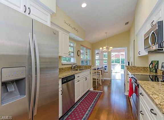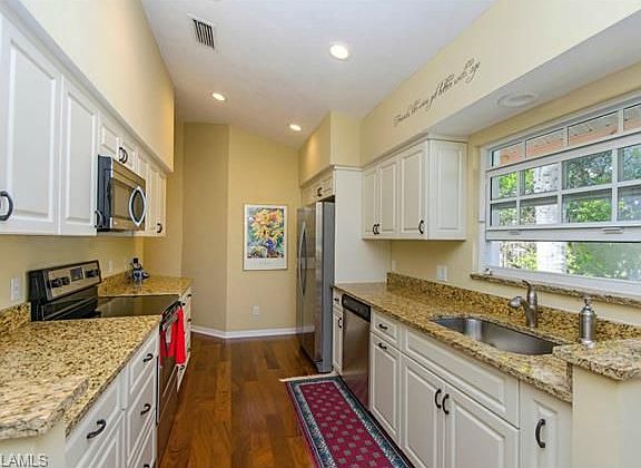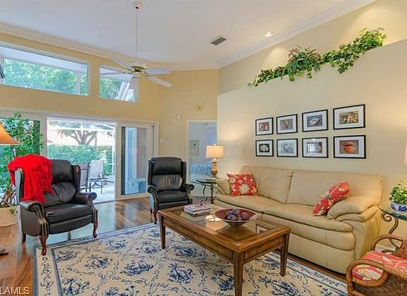 H.9238 Charming villa is nestled on a quiet cul-de sac street in a quaint neighborhood. Enjoy your morning coffee from the privacy of your extended lanai or relax in the above ground spa surrounded by lush tropical landscaping. For your added peace of mind every door and window has been replaced with the latest in hurricane impact resistant standards, a high wind resistant garage door, your front entry door is also a security door featuring Keep Safe Glass and the tile roof has been replaced in 2006 to the most stringent of building codes. Other features include totally renovated kitchen with new appliances, granite and cabinets, volume ceilings, crown molding, marble entry, beautiful hardwood floors in living area and generous closet space. Home has been meticulously maintained and for added benefit can be purchased furnished.
