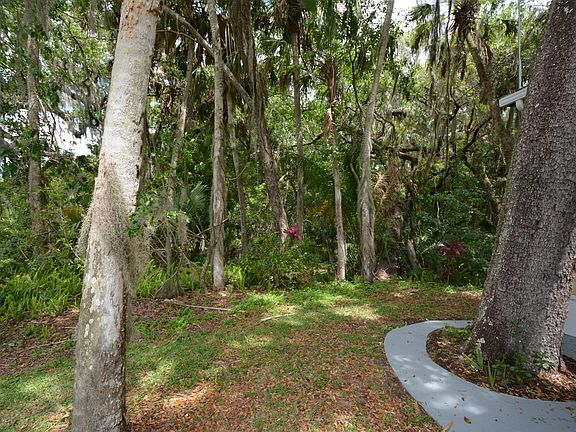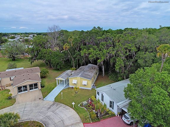 Freshly updated and move-in ready! This home has had a makeover that includes new flooring, all new plumbing (including under the home), fresh paint , and new appliances. If you are a nature lover, this is the home for you as it's located on a quiet cul-de-sac backing to a beautiful wooded preserve, featuring tall laurel oaks and mature palms. The enclosed Florida Room across the back of the home is under air and has many windows to enjoy the wooded view. Outside is a small patio area where you can sit, and even see a nearby pond. This is a perfect location to put out a multitude of bird feeders to attract cardinals, finches, songbirds and more. Inside, you'll find an Open Floor Plan with a dining area, built-in china hutch, and breakfast bar at the kitchen counter. Refrigerator with Ice Maker, Self-Cleaning Range with warming zone, and Dishwasher are all new. The large master bedroom has a walk in closet, and its own bath with walk-in shower. 2nd bedroom has a walk in closet and the guest bath is a tub/shower combo. An inside utility area has a new washer and a dryer. The home is being sold partially furnished with a sofa, loveseat, coffee and end tables, and an ottoman. Ridgewood Meadows is an active 55+ community with activities, clubhouse, heated pool, spa, tennis courts, and is a 24 hour gated community with a gate attendant. Low monthly fees include lawn care and a recycled water sprinkler system.