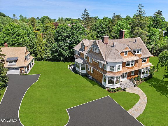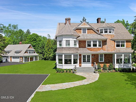 Extremely rare opportunity to acquire a spectacular, completely reconstructed seaside compound with separate 2-story guest cottage, behind the gates of the exclusive Belle Haven Association; only steps (or a short golf cart ride!) to the Belle Haven Club. The Gourlie Cottage, an original Shingle Style Belle Haven estate, has been completely reimagined to the highest standards featuring over 9,700 square feet of luxurious living space. The breathtaking interiors are accentuated by soaring ceilings plus an abundance of natural light streaming through the oversized windows. The home's ultra-prime location in the center of Belle Haven is scenic & serene with 24/7 security. The perfectly level property has a town approved pool site. This luxurious & idyllic seaside lifestyle is otherworldly.