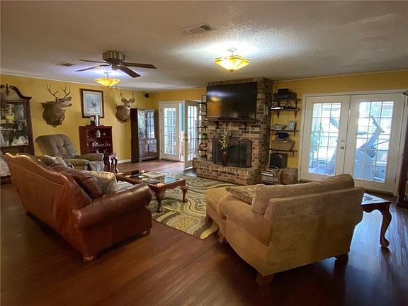 CANE RIVER home that is move in ready! Open plan with open counter between living room and kitchen. Wood burning fireplace for those cozy nights. Gorgeous wood laminate flooring. Split bedrooms with two bedrooms and full bath on one side and wonderful master suite on other. Lay in bed and watch the boats go by. Master has walk in closet, whirlpool tub, separate tiled shower, and two sinks. Sunroom has full window and French door views of river. This home has separate office for working at home. Separate utility room for washer/dryer. Two section workshop, retaining wall on river, fenced back yard and two car attached carport. Security system with fire detection. Call for appointment.