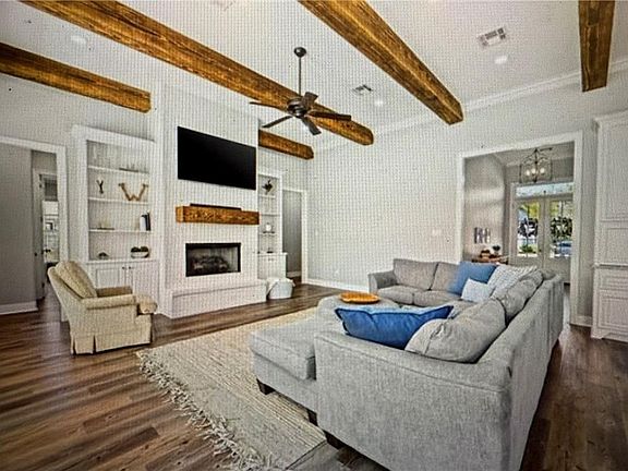 Gorgeous Acadian style custom built home situated within the highly desirable Pecan Bayou subdivision. Built in 2020, this home offers spacious living and modern amenities anybody would appreciate. This 5 bedroom, 3 full bathroom home is a rare find. The open floor plan and lovely back patio are great for entertaining guests or enjoying a lazy weekend with your loved ones. Aside from stainless steel appliances, a gas fireplace, and rustic exposed beams, the living area features large windows that provide abundant natural light. The master bedroom suite provides double vanities, dressing areas and closets. The oversized custom shower and soaking tub complete this magnificent space. This home also offers a gated entry to the garage, covered front porch, fully fenced private backyard and a security system. All of this being within walking distance to numerous shopping and dining hotspots.