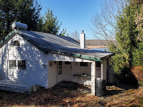 MAKE YOUR MEMORIES HERE! This 2 bedroom technical lakefront PA State Cabin on Pecks Pond is an adorable rustic retreat. Enjoy views of the lake from the front porch. Propane heat & a pellet stove keep the cabin cozy. Innovative indoor shower features a gravity fed ''water system'' w/water heater. Living room, small sleeping (or storage) loft, deluxe heated outhouse, and a charming kitchen make this cabin an appealing place to fulfill your dream of owning a sentimental and charming lake house in the Poconos. (PA State cabins can ONLY be purchased by PA Residents; sorry, no out of state buyers; those are the rules. Cash only; No mortgage possible.) Sold turn-key / furnished.