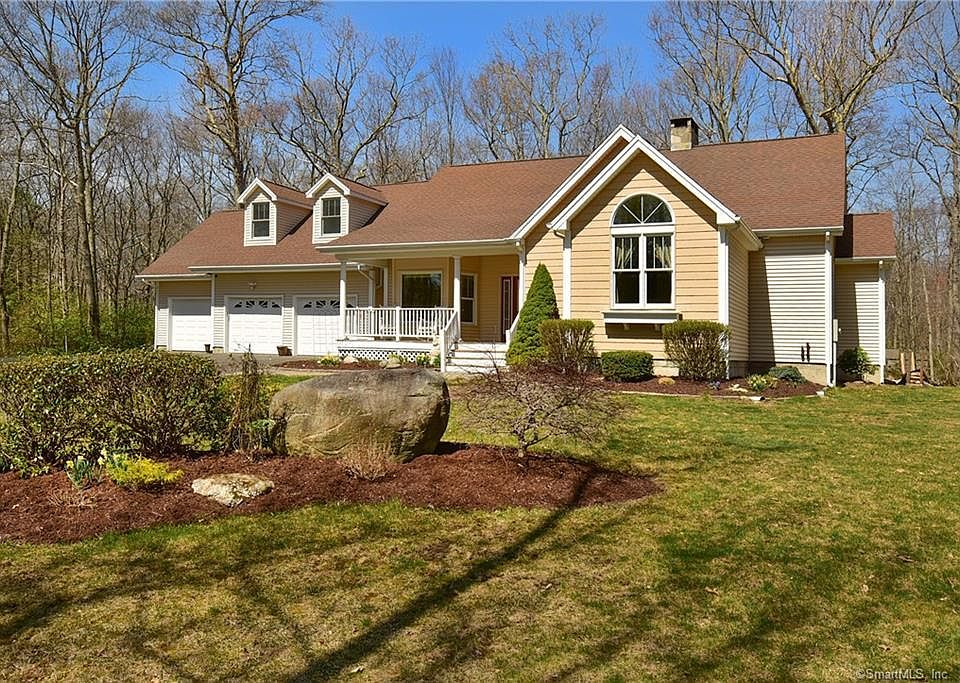 Tucked away in beautiful Tolland, this 4 bedroom, with 3 bedrooms on the main level and 1 on the upper level, and 3 full bath home is a must see. Set back from the road, this home sits on over 2 acres, with a 3 car attached garage and 2 car detached garage for plenty of parking/storage. The Great Room with beautiful stone fireplace opens to a Chef Kitchen and eating area, making it perfect for entertaining. Retreat to the Primary Bedroom with full bath.