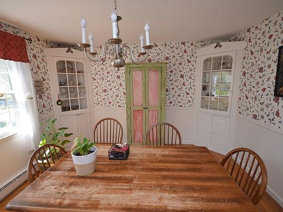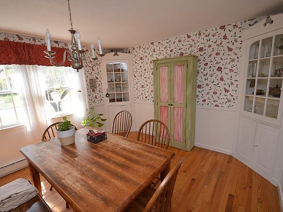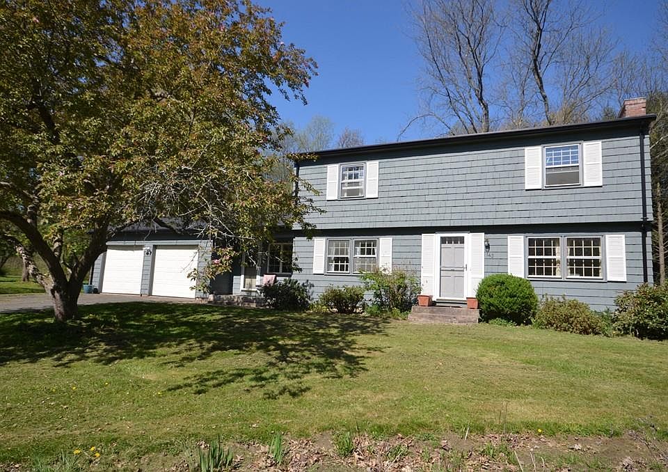 This four bedroom Colonial is located at the western end of Pondview Circle and backs up to farmland in Hadley. The interior has been well maintained and includes an upgraded cherry kitchen, dining room with built-in corner cupboards, a spacious living room with fireplace and a versatile family room which connects to a three season enclosed porch and private rear yard. The second floor includes four sun filled bedrooms and a full bath. The basement has a finished room that works as a study and a playroom to spread out in. All in all, a great house to entertain in - don't forget to use the fire pit in the back yard to make those smores this summer.