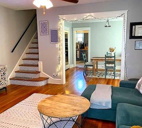 Pride of ownership is shown in every room of this charming well-maintained house. You will enter into a cozy enclosed porch with hardwood flooring and plenty of natural light. From the porch you move into the living room with hardwood floors and a fireplace that flows directly into a spacious dining area that will be utilized for every day dining along with entertaining friends and family. The cheerful kitchen has painted cabinets, butcher block counter top, new sink with garbage disposal, newer backsplash, stainless steal appliances, new LL Flooring Aqua Seal Laminate flooring and a sweet breakfast nook. Off the kitchen is a powder room and access to the outside and basement. The basement has plenty of room for storage and has the laundry facilities. Out the back door is a level fenced in private back yard perfect for any get togethers. Up the uniquely detailed staircase, there is 3 Bedrooms with hardwood floors. Included upstairs is a walk up attic and an updated full bath with new vanity and bathfitter tub/shower combination. This property is close to major highways, airport and public transportation. Make your appointment quickly to see this property.