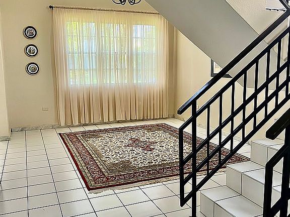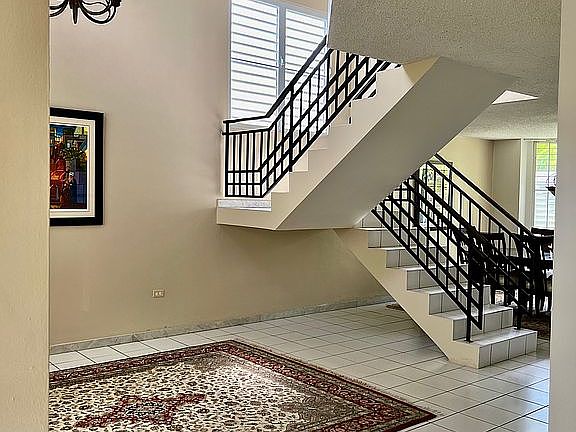 Exclusive gated community in Guaynabo with 24/7 private security. 4,618 sq. ft. (429 sq. meters) property strategically located with very convenient access to principal highways and nearby pharmacies, restaurants, shopping centers and top private bilingual schools (Maristas, San Ignacio, Baldwin, Wesleyan Academy and American Military Academy). High ceiling (cathedral type) living room, formal dining room, extended kitchen and family room area (open concept area) with additional storage closet and half bathroom. Spacious Terrace (31'X20') decorated with wooden ceiling beams, designed tiled floor and bar area. The master suite with walk-in closet and en-suite bathroom featuring double sinks, a soaking tub and separate shower. Three additional bedrooms provide plenty of space for family, guests, or a home office. Two full bathrooms and the laundry room conveniently located on the second floor. Two car garage with additional storage space. Electric gas generator of 11K power with double transfer switch for additional capacity of another backup generator.