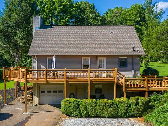 This 3 bedroom 3 full bath home sits a level 1 acre yard bordered w/bubbling stream. Fresh paint inside, new retaining wall, updates to deck, ext wood trim, kitchen, bath. New updates to central HVAC in 2019, 30 yr roof 2012. HS Internet. The peaceful subdivision of Quail Hollow is the setting for this home. Plenty of parking with upper and lower driveway. Stone steps & walkway lead to the large wrap-around deck that's great for family picnics, entertaining, or just hanging out. Nice low maintenance landscape & stately trees add to this great yard. From the first door off the deck you find the Kitchen on the right and the open dining/living area on the left. The living room has a stone woodstove fireplace nestled between two sets of French doors to allow lots of natural light in the room and a vaulted ceiling with windows over the french doors for additional lighting. Both set of french doors access the outdoor deck. In the basement is another bedroom and full bath - great for guests or the growing family, you will also find a 22 x 19 garage with a workshop bench. (Home has a 2 bedroom septic but is functionally used as a 3 bedroom home)Call today!! Virtual Tour Online too!