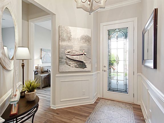 Beautifully appointed, spacious home in the Hampton Lake Community! This meticulously kept, 3 Bedroom, 3 Bath home is impeccably decorated and in move-in condition! Special features include: open, split living floor plan (2 bedroom on main and 3rd bedroom upstairs,) extended layout for larger family room and master suite; bonus room upstairs; luxury vinyl flooring; quartz countertops, double oven and stainless steel appliances in kitchen; large laundry room with sink and drop zone; welcoming covered front porch and relaxing covered patio overlooking treed backyard + much more! All this within a short walk or golf cart ride to Crystal Lake amenities (walking track, new pool, party barn, pickleball,++) plus access to all of the many amzing amenities found in the Hampton Lake Community!